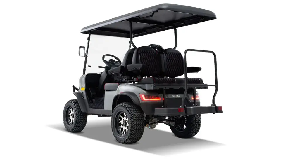 The Kandi Kruiser 4PRO is a lithium powered 4 seat cart designed for neighborhood driving, golf course use, and day to day transportation. It uses a 48V LiFePO4 battery that delivers strong, consistent power and charges in about six and a half hours. The cart reaches up to 25 mph and provides a minimum range of 40 miles per charge.
